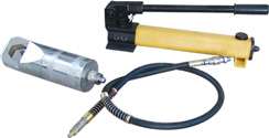 3、壓動手動油泵,使劈刀頂出推進至螺母,當(dāng)劈刀頂進螺母二分之一時,須小心的壓動手泵,以免用力過猛,劈刀快速將螺母劈開損傷螺栓絲扣。